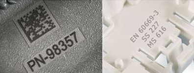 - 内部トレーサビリティ: 製造プロセスに最適で標準要件(シリアル番号、年月日、シフトコードなど…)を満たす自動化生産データマーキング。